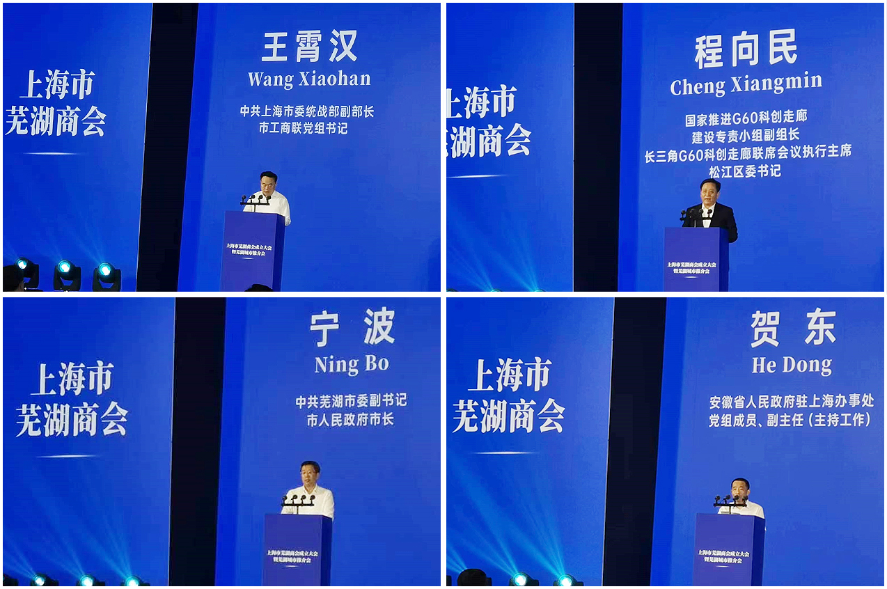 2023年7月1日,上海市蕪湖商會(huì)成立大會(huì)暨蕪湖城市推介大會(huì)在上海虹橋綠地鉑瑞酒店舉行。上海市委統(tǒng)戰(zhàn)部副部長王霄漢、松江區(qū)委書記程向民、蕪湖市人民政府市長寧波、安徽省駐滬辦副主任(主持工作)賀東等領(lǐng)導(dǎo)出席大會(huì)并講話。